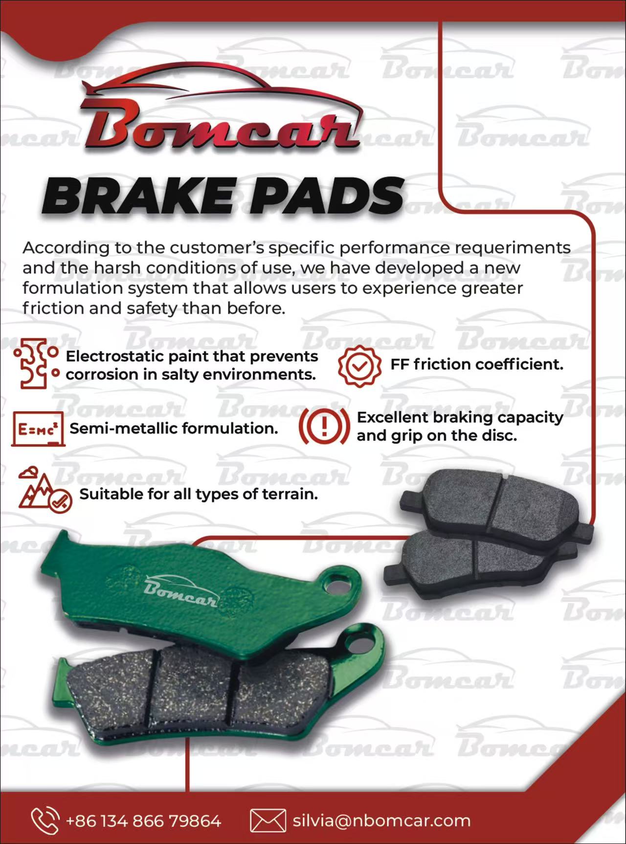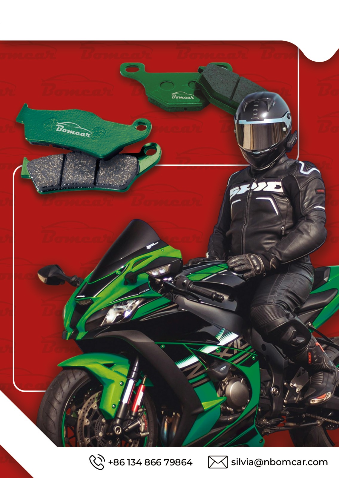 The pads fit most popular motorcycle models and offer flexible customization (private labeling, packaging) for global trade partners. “This new line meets global riders’ safety and sustainability needs, helping our trade partners gain a competitive edge,” said Silvia, Executive Manager of Bomcar.